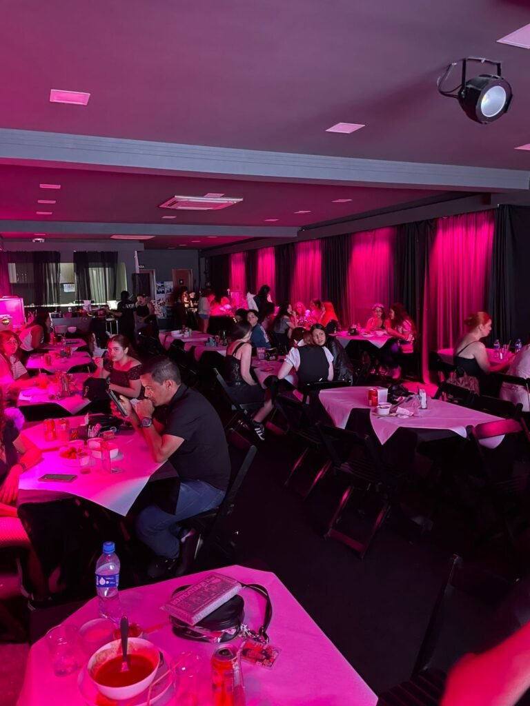 A programação incluiu momentos de exibição, brincadeiras interativas e um bingo com prêmios, além de lojinhas temáticas e decoração imersiva, elementos que ajudaram a compor a experiência para o público. Ao longo do encontro, a troca entre fãs foi parte central: conversas, referências em comum e aquele clima de comunidade que costuma marcar eventos presenciais de cultura coreana.